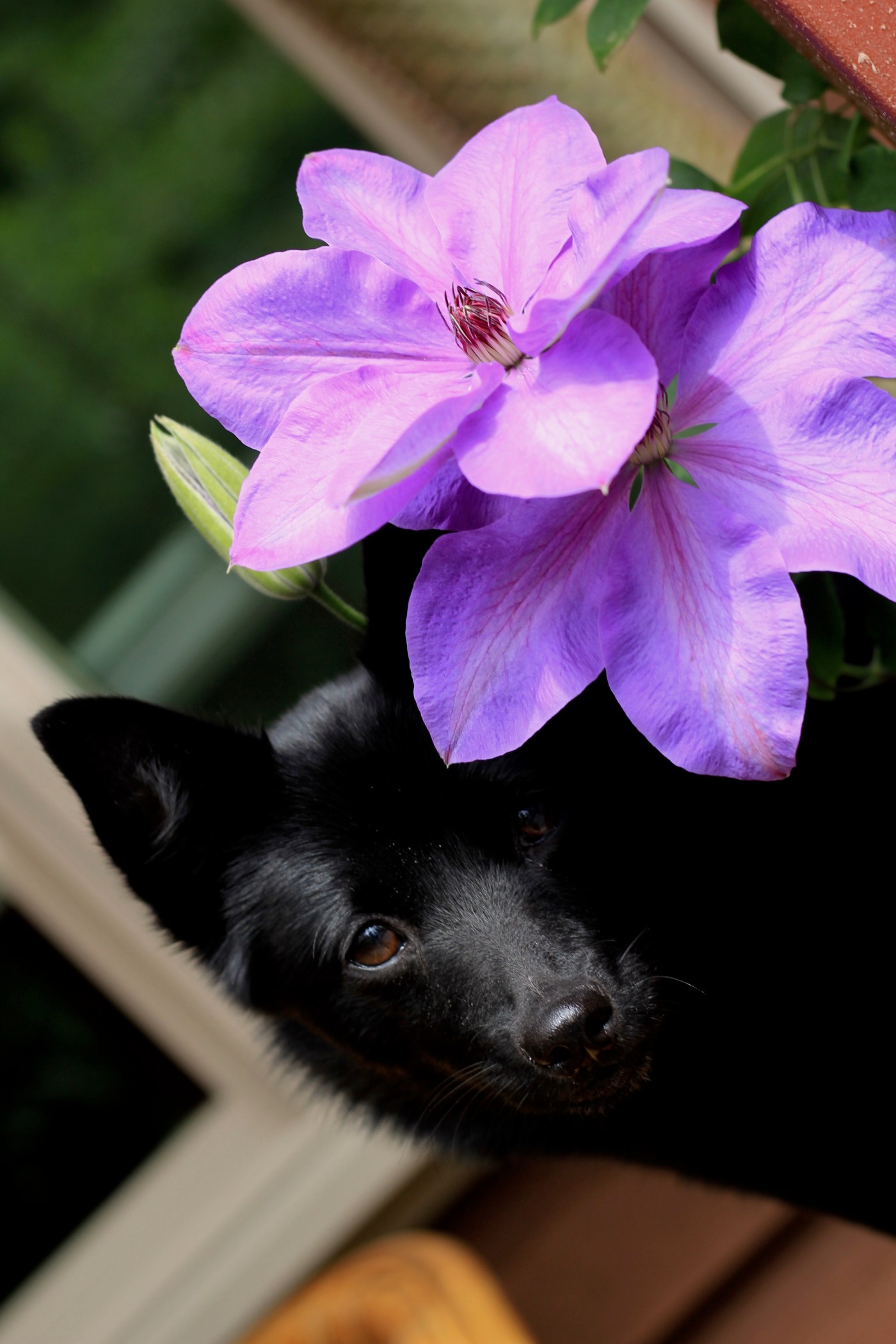We planted this lovely clematis on the north side of a shed. I’d remembered my mother’s instructions that they liked to have their roots kept cool but had forgotten the part about them needing sunshine too. It languished, a fragile stick, flowerless.